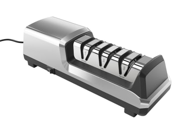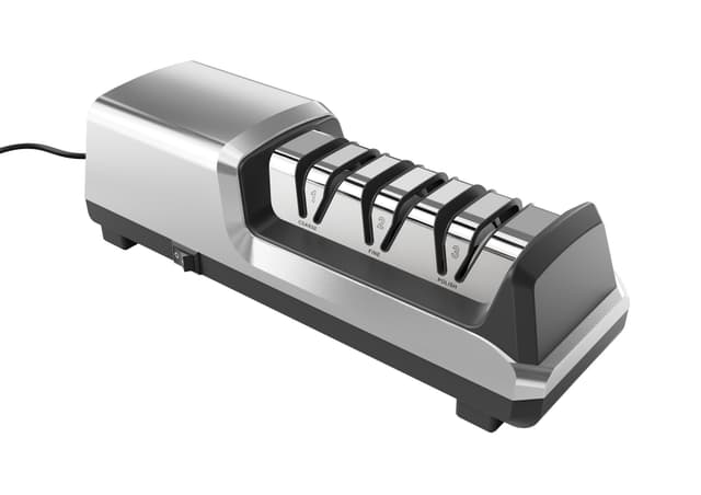 SpecifikationerSlipvinklar: 15°Slipsteg: Grov (240# diamant), Mellan (600# diamant), Fin/Polering (1000# harts)Material: Diamant och resin/hartsKompatibla knivar: Rostfria, keramiska, asiatiska, europeiska, amerikanska och sushi-knivarEj för: Tandade knivarMax kontinuerlig användning: 60 minuterSäkerhet: Ej för barn, använd på plan yta, dra ur ström före rengöring