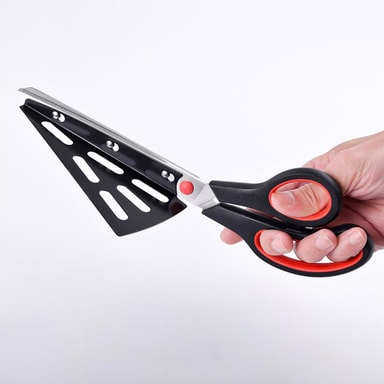 Bekväm pizzaskärning: Skär enkelt igenom din pizza med vår 2-i-1 löstagbara pizzasax i rostfritt stål. Saxen är specifikt designad för att ge ett rent snitt varje gång, vilket gör pizzadelningen mycket snabb och smidig. Den löstagbara spateln är praktisk för att plocka upp de klippta pizzabitarna.