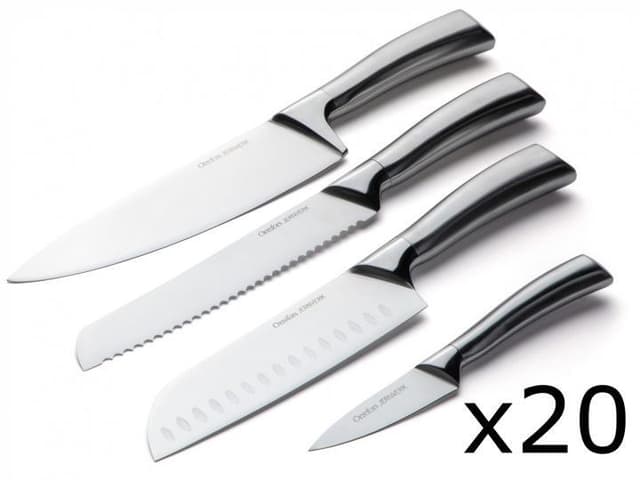 Ett mycket användbart och exklusivt knivset om fyra knivar, japansk kockkniv, kockkniv, brödkniv och en skalkniv. Knivarna har mycket bra skärpa och fungerar givetvis utmärkt att använda även till grönsaker, kött, fisk och annat.