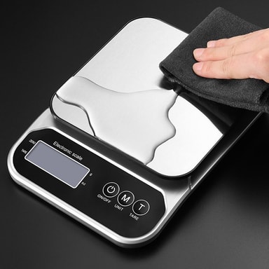 Elegant design och material: Köksvågen har en stilren silverfärgad design som passar perfekt in i alla moderna kök. Den är tillverkad av högkvalitativ ABS-plast med en rostfri stålpanel, vilket gör den både tålig och lätt att rengöra. Den rostfria stålpanelen är hygienisk och motståndskraftig mot fläckar och lukter. Vågens kompakta storlek gör den enkel att förvara när den inte används. Den är både funktionell och estetiskt tilltalande, vilket gör den till ett utmärkt tillskott till ditt kök.