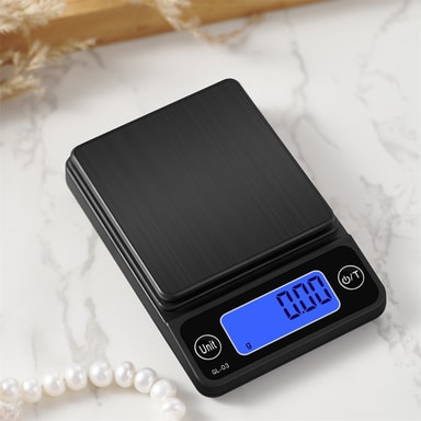 Liten precisionsvåg: Den elektroniska minivågen är lämplig för smycken, ädelstenar, olika pulver med mera och mäter med hög noggrannhet.