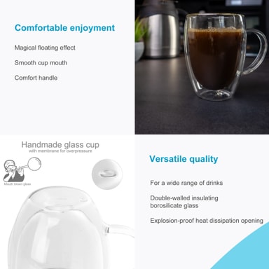 MATERIAL: Det dubbelväggiga borosilikatglaset sticker ut eftersom det är tillverkat av värmebeständigt material och är lämpligt för diskmaskin. Materialet ger en elegant effekt.
