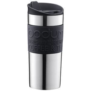 BODUM Resemugg rymmer 0,35 l och är perfekt till resan i bilen, bussen eller till träning. Resemuggen är gjort av rostfritt stål och BPA-fri plast och har silikonband för ett bra och behagligt grepp. Muggen kan användas till kalla och varma drycker, men måste hållas lodrätt. Höjd: 18,5 cm