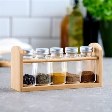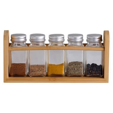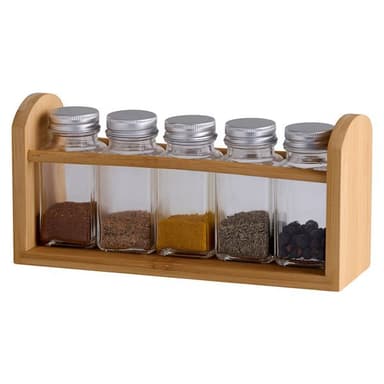 Kryddhylla i bambu med 5 glasbehållare och aluminiumlock