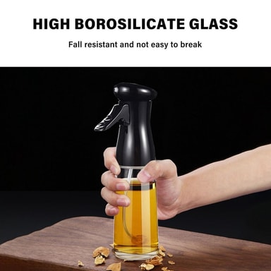 Oljespruta Glas Oljesprayflaska 200 ML Oil Misters Vinägerflaska Oljedispenser för Air Fryer Matlagning BBQ Salladsrostning - SvartOljespruta gjord av glas med hög hårdhet är inte lätt att bryta och tålig för dagligt bruk.