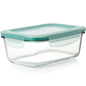 OXOs förvaringsbehållare är tillverkad av borosilikatglas som kan tas direkt från frysen till varm ugn eller mikrougn (-18°C till 230°C). Med sin eleganta design kan den också användas för servering och kan tas direkt från frysen till ugnen eller bordet. Locket har fyra låsclips och en extra tjock packning som säkerställer 100 % tät förslutning. Behållare och lock är båda BPA-fria och de olika storlekarna kan staplas ovanpå varandra. Tål maskindisk.