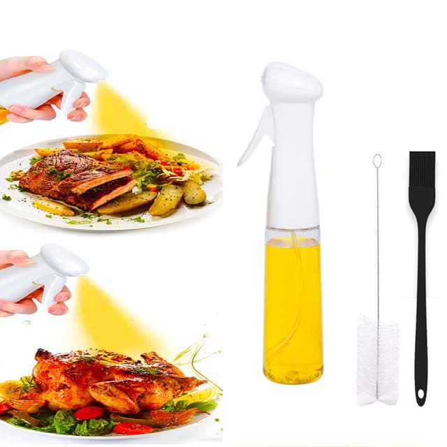 Tillverkad av livsmedelsklassat plastmaterial och glasflaska, lätt att använda och rengöra. Oljeflaskan kommer att spraya oljedimma jämnt, se till att du bättre kan kontrollera mängden olja och njuta av ett hälsosamt liv med låg fetthalt.