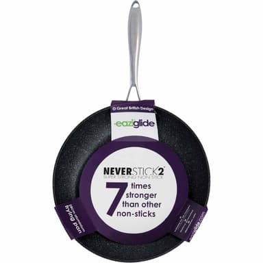 Eaziglide Stekpanna 28 cmLivstids garanti på att ytbeläggningen inte flagar• 3 lager beläggning• 3,5 mm smidd härdad aluminiumkropp• Nitat rostfritt handtag, är svalt vid användning• Ugnssäker upp till 260 ° C• Fungerar på alla värmekällorLäs mer om produkten