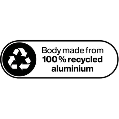 Kropp av 100% återvunnen aluminium.