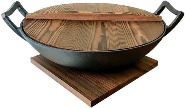 Satake Nabe Wok är ett läckert tillskott till Nabe gjutjärnswok-serien. Nabe Wok är en stadig gjutjärnswok med ett vackert trälock för servering, ett värmebeständigt glaslock (tål värme upp till 220 °C) och en träbotten. Woken har ett stadigt handtag som underlättar säker hantering. Wokpannan fungerar på alla typer av spisar, inklusive induktion.