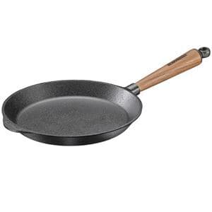 Tillverkat i Sverige med 25 års gjutjärnsgaranti Handtag i valnöt som isolerar värme effektivt 5 mm tjock botten för att sprida värme jämnt, få fin stekyta och för att hålla formen i generationer Konkavt precisionssvarvad botten som gör att pannan står stabilt på spisen även vid mycket hög värme Handslipade kanter runt om pannan Stödhandtag som förenklar hantering Fungerar på alla värmekällor såsom induktion och gas Naturlig non-stick av svensk ekologisk rapsolja