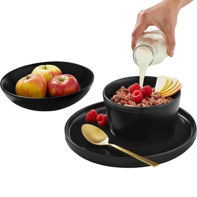 Una-servisens exklusiva look drar alla blickar till sig. Den moderna designen passar sömlöst in i moderna kök och matsalar och ger varje bord en elegant touch. Med denna moderna servis får du inte bara stil utan också funktionalitet i ditt hem. Kombinera med ytterligare delar för att fullända din personliga servis!