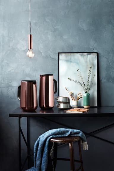 Termoskannan från WMF Impulse-serien håller drycker varma eller kalla tack vare den högkvalitativa glasinredningen. Det välstängande skruvlocket garanterar täthet och hällning utan stänk och dropp. Den moderna designen och trendiga kopparfärgen gör kLäs mer om produkten