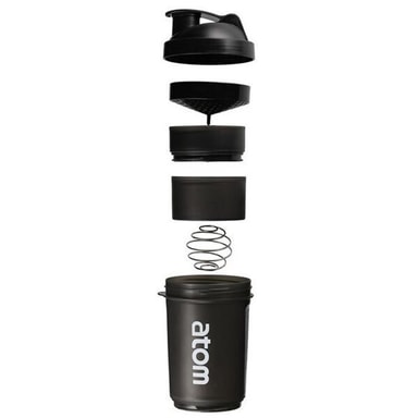 Denna shakerflaska på 500 ml är perfekt för träning, jobb eller resor. Den är utrustad med en vispboll som ser till att drycken blandas jämnt och klumpfritt, oavsett om det handlar om proteinshakes, smoothies eller andra drycker. De två löstagbara facken gör det enkelt att förvara pulver, kosttillskott eller snacks direkt i flaskan, vilket gör den extra smidig att ta med.