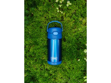 Thermos 355 ml Funtainer Hydration dryckesflaska i rostfritt stål och loch med pop-up-sugrör. Flaskan är endast avsedd för kalla drycker. Handdiskas, även före första användningstillfället.