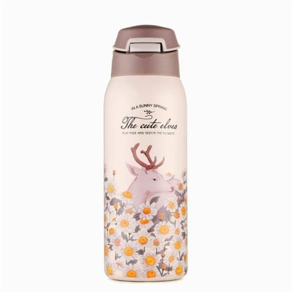 Vattenflaska tillverkad av rostfritt stål med motiv av blommor och en hjort. Vattenflaskan är värmeisolerade i 6 timmar och kan hålla drycken ljummen i upp till 12 timmar. Termosflaskan rymmer 350 ml. Isolerar till: 72 ° c och uppåt efter 6 timmar vid rumstemperatur och 52 ° c eller högre efter 12 timmar.