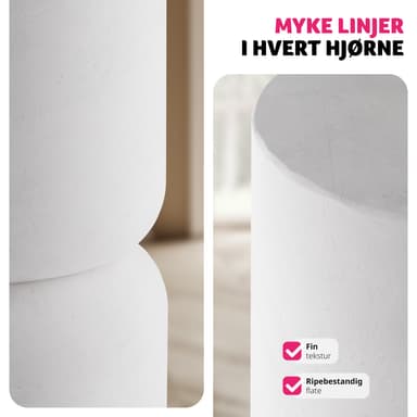 Sidobordens rundade linjer i kombination med de mjuka formerna i Chubby-look ger ditt hem en inbjudande och harmonisk atmosfär. Oavsett om det är som en praktisk avlastningsyta bredvid soffan eller som ett elegant nattduksbord i sovrummet – setet är mångsidigt och passar perfekt in i varje inredningsstil.