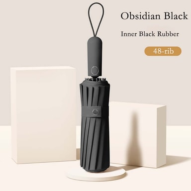 Stormsäkert och robust: Detta automatiska paraply är konstruerat med 48 förstärkta ribbor (16 ribbor x 3), vilket ger exceptionell stabilitet och motståndskraft mot starka vindar och kraftigt regn. Den robusta konstruktionen säkerställer att paraplyet inte vänds ut och in, även under de mest utmanande väderförhållandena. Perfekt för användning i blåsiga kustregioner eller under oväder.
