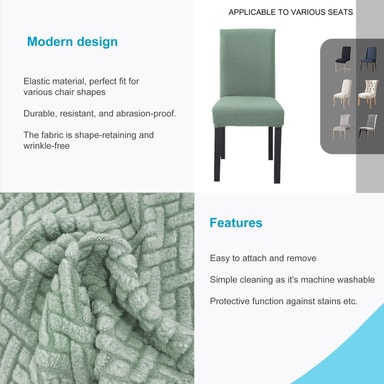 Tack vare det flexibla och sträckbara materialet anpassar det sig till stolens form och storlek. Färgen och designen passar in i alla typer av inredningar, både privata och offentliga.