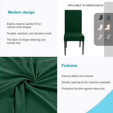 Det elastiska stolsöverdraget garanterar snabb sträckning och ett bra grepp, samtidigt som det får även gamla stolar att se ut som nya. Samtidigt skyddar den mot damm, fläckar, repor och blekning med tiden.