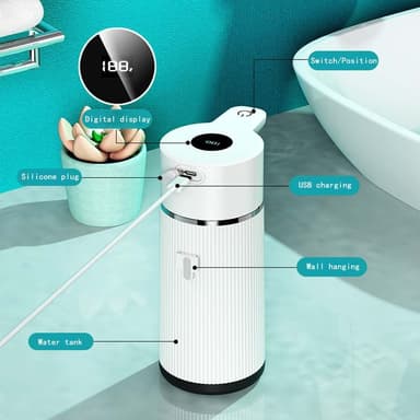 Stor kapacitet och skärm: Med en kapacitet på 420 ml behöver du inte fylla på tvålen lika ofta. Den inbyggda skärmen visar batterinivå och doseringsmängd, vilket gör det enkelt att övervaka och underhålla enheten. Den stora kapaciteten gör den idealisk för både hem- och kommersiellt bruk, och skärmen ger användbar information som hjälper dig att hålla koll på enheten. Detta minskar behovet av frekventa påfyllningar och underhåll.