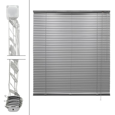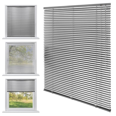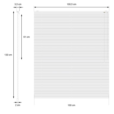 Omfattning av leverans: 1 x blinda aluminium 100 x 130cm, 25 mm lameller 2 x Universal bricka 2 x kabelhållare 1 x Föräldrakontroll Tekniska specifikationer: silver Gavlar: halv Material: hög kvalitet aluminium Mått (B x H): 100 x 13