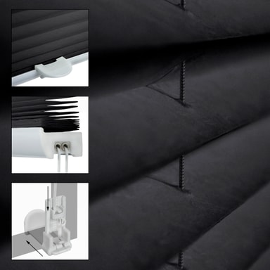 Vår veckade persienn i färdiga standardmått kan användas snabbt och är enkel att montera.
