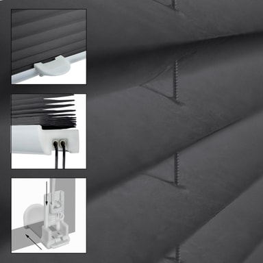 Vår veckade persienn i färdiga standardmått kan användas snabbt och är enkel att montera.