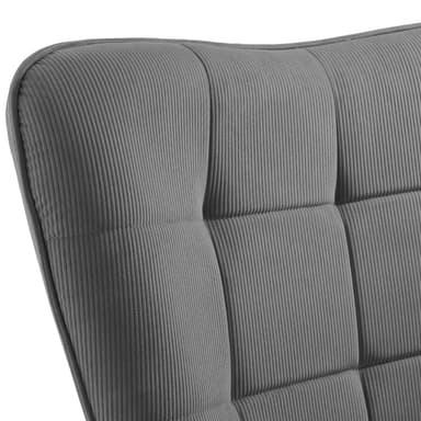 Öronfåtöljen imponerar redan vid första anblicken med sitt eleganta quiltmönster och sitt fina manchestertyg, som inte bara ser mysigt ut utan också lovar en mycket behaglig känsla. Den bekväma stoppningen av högdensitetsskum anpassar sig dessutom perfekt till din kropp och ger en avslappnad sittupplevelse, medan det ergonomiskt formade ryggstödet optimalt stödjer din rygg. Oavsett om du läser, tittar på TV eller bara slappnar av – här kan du känna dig helt bekväm.
