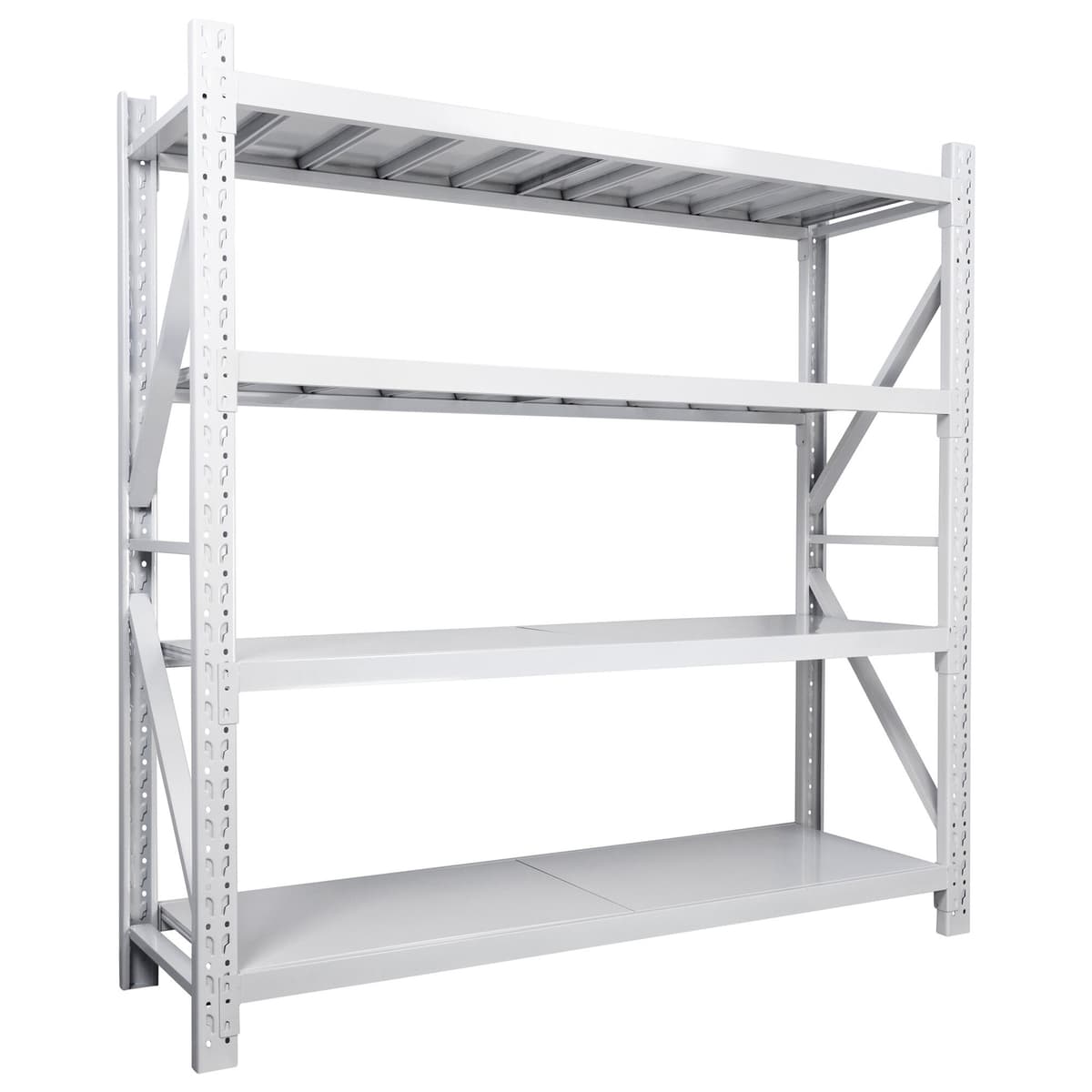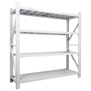 Fornorths robusta lagerhylla på 800kg, 200x60x200cm, i vit färg, erbjuder fyra justerbara förvaringsnivåer för effektiv organisering och säker förvaring i ditt garage, kontor eller lager.Läs mer om produkten