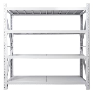 Med en höjd på 200 cm och en bredd på 200 cm har Fornorth lagerhylla fyra förvaringsnivåer med justerbar höjd. Den här lagerhyllan kan lätt hantera tyngre föremål, eftersom du kan lägga 200 kg föremål på varje nivå – vilket ger dig en total lastkapacitet på 800 kg.