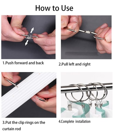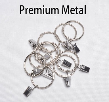 Gardinringar med öppningsbara klämmor. Gör att du enkelt kan fästa eller ta bort gardiner på gardinstänger utan att behöva ta ner hela stången. Gardinfästena är gjorda av rostfritt metall.