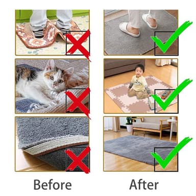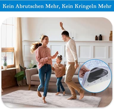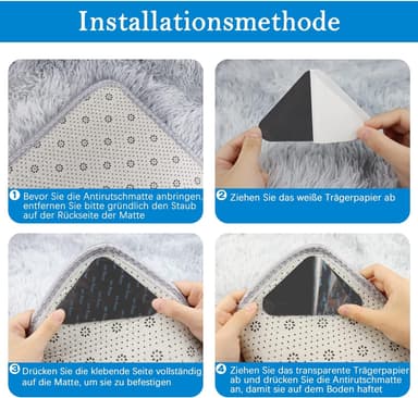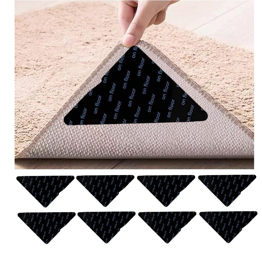 Mångsidig och lätt att använda: Passar för mattor i alla storlekar och typer. Griparna är enkla att fästa – ta bort skyddsplasten och placera dem i hörnen eller längs kanterna på mattan för att hålla den säkert på plats.