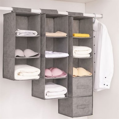 Dessa hängande garderobshyllor med 5 fack är den perfekta lösningen för att hålla din garderob organiserad och fri från oreda. De rymliga facken ger gott om plats för att förvara allt från kläder och accessoarer till skor och andra personliga tillhörigheter. Tillverkad av hållbart bomullslinne och PP-material, är dessa hyllor både starka och stiliga, vilket gör dem till ett utmärkt tillägg till vilken garderob som helst.