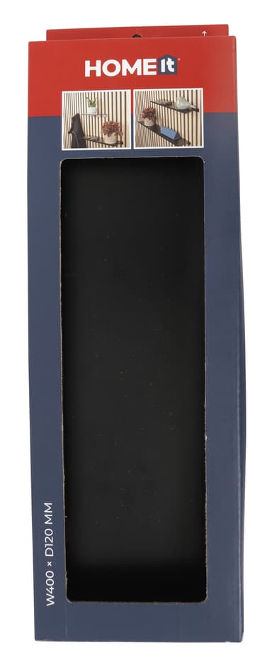 HOME It® hylla i lackerat stål med upphöjd framkant, för lodrät montering på akustikpaneler för dekoration och förvaring. Inklusive skruvar för montering.Mått: D120 × B400 mmFärg: matt svartLäs mer om produkten