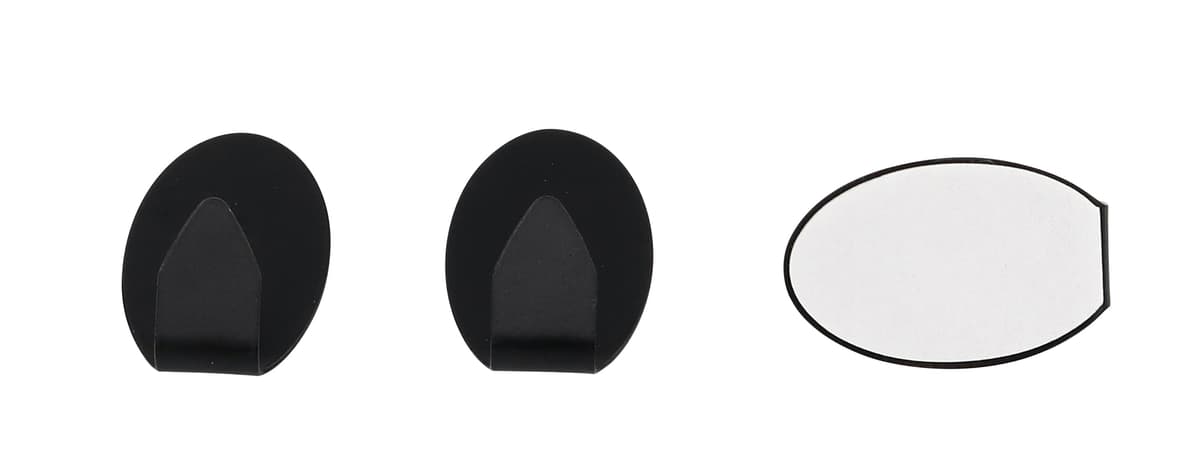 Självhäftande krokar för montering på blanka ytor. Höjd: 37 mm Bredd: 27 mm Material: pulverlackat stål Färg: svart Belastning: max. 1 kg Innehåll: 3 stLäs mer om produkten