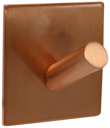 Krok med dubbelhäftande 3M-tejp som enkelt kan monteras på jämna och plana ytor. Därmed slipper du borra hål i väggar och kakelplattor i badrummet. Använd den självhäftande kroken till exempelvis kökshanddukar, handdukar och andra mindre saker. Tänk på att självhäftande knoppar måste monteras på plana, rengjorda ytor och limmet ska härda i 24 timmar före användning. Mått: 4 x 4 cm Yta: Polerad mässing