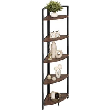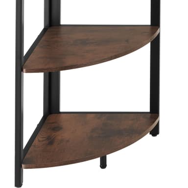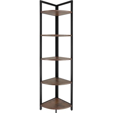 Visa upp dina dekorationer på bästa sätt med den snygga hörnhyllan Castlebar från tectake i en stilig och industriell design. Fem rundade och hyllplan i en fin trälook erbjuder perfekta plattformar för dina personliga favoriter. Den svarta stålramen kompletterar hyllans eleganta och lättskötta design. Med ett extra ben, justerbara fötter och ett pålitligt anti-lutningsskydd garanteras förvaringshyllans stabilitet i alla lägen. Denna platsbesparande och rustika hörnhylla kombinerar funktionalitet med tidlös stil. Låt hörnhyllan Castlebar från tectake bli en perfekt detalj i ditt hem.