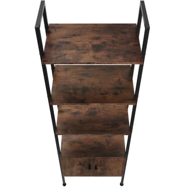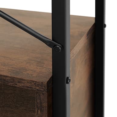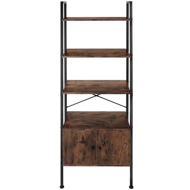 Med sina raka linjer och en minimalistisk design sätter den funktionella hyllan Brentwood från tectake skickligt din dekoration i rampljuset. Den industriella stilen kombinerar svalt stål och varmt trä, vilket ger bokhyllan balanserade konstraster och ett stiligt utseende. På ett platsbesparande sätt erbjuder den lättskötta förvaringshyllan, med fyra öppna hyllplan och två skåp, gott om plats för presentation och förvaring. Hyllans robusta ram och justerbara fötter ger hög stabilitet och ett säkert fotfäste, medan den solida spånskivan erbjuder hållbarhet och styrka. Denna lättskötta och stiliga hylla är både praktisk och smakfull - den perfekta lösningen för ditt hem.