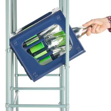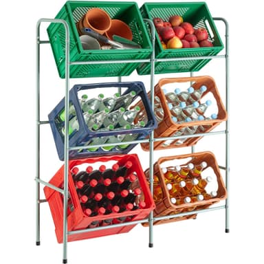 Med denna praktiska backhylla kan du smart och enkelt förvara dina drickabackar, klappboxar och eurobackar. Vårt robusta backställ består av pulverlackerat stålrör med glidskyddande gummifötter. Genom att fästa backhyllan i väggen, kommer den att stå extra säkert. Backarna är i lutning, vilket gör det enkelt att komma åt dina favoritdrycker med denna drickabackshylla.