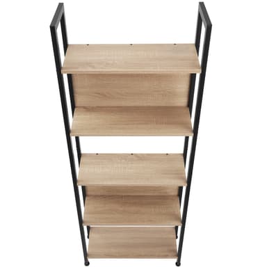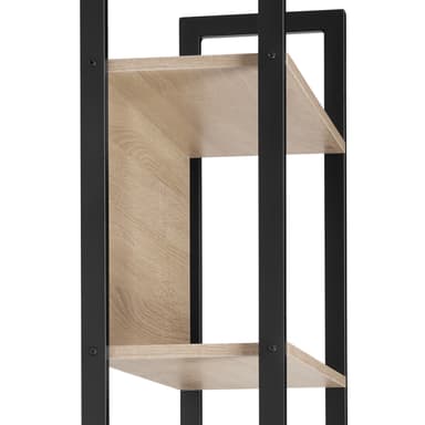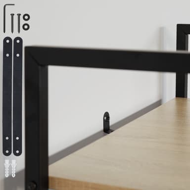 Med den funktionella hyllan Westport från tectake kan du skapa eleganta presentationsytor som lyfter din inredning. Hyllsystemets karaktäristiska utseende beror på dess minimalistiska design med industriellt stil, en slående symbios av trä och stål. Hyllans fem fasta hyllplan är robusta och kopplade till en pulverlackerad ram, vilket ger hela konstruktionen en imponerande belastningskapacitet. Förvaringshyllan är försedd med fyra höjdjusterbara plastfötter och ett pålitligt tippskydd som säkerställer att dina personliga föremål står stadigt och säkert på denna stilrena och funktionella stålhylla.