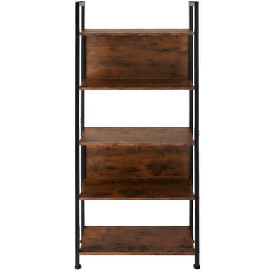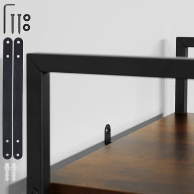 Med den funktionella hyllan Westport från tectake kan du skapa eleganta presentationsytor som lyfter din inredning. Hyllsystemets karaktäristiska utseende beror på dess minimalistiska design med industriellt stil, en slående symbios av trä och stål. Hyllans fem fasta hyllplan är robusta och kopplade till en pulverlackerad ram, vilket ger hela konstruktionen en imponerande belastningskapacitet. Förvaringshyllan är försedd med fyra höjdjusterbara plastfötter och ett pålitligt tippskydd som säkerställer att dina personliga föremål står stadigt och säkert på denna stilrena och funktionella stålhylla.