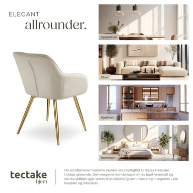 Denna eleganta stol från tectake med stoppad sits uppvisar ett perfekt samspel mellan form och färg. Den lyckade kontrasten mellan sitsen och benen skapar en spännande kombination och drar allas blickar till sig. Stolens bekväma armstöd och stoppning ger nödvändig komfort. Utmärkt stabilitet och hög belastningskapacitet utmärker det robusta stålstativet och ger stolen lång hållbarhet.