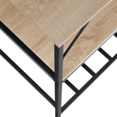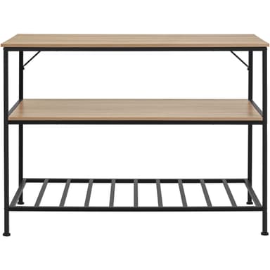 Skapa mer förvaringsutrymme för porslin, kastruller, stekpannor, kryddor eller proviant med den praktiska kökshyllan Akeley från tectake i en smakfull fabrikslook för köket. Två hyllplan och ett rutnät ger gott om utrymme för förvaring och övertygar med hög lastkapacitet. Hyllans massiva spånskivan har en skyddande melaminbeläggning och är visuellt tilltalande med sina fina ådring i trälook. Kökshyllans medvetna enkla design återspeglas i den linjära stålramen, som förutom sin utmärkta stabilitet även ger de okränkbara fristående hyllorna dess mångsidiga användningsmöjligheter.