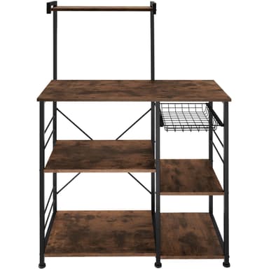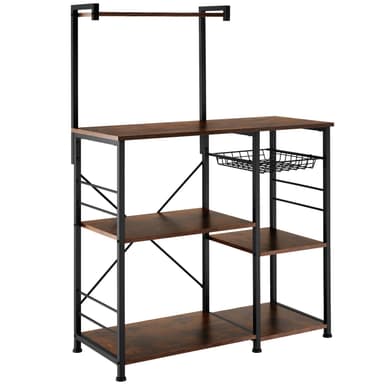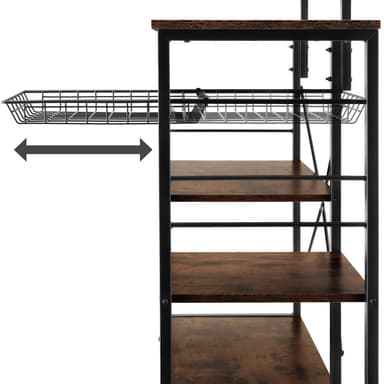 Upplev mångsidigheten i den funktionella industriella stilen med den utrymmesbesparande kökshylla Crawley från tectake. Den tydliga, reducerade design, det svala hårda stålet och de varma, inbjudande träelementen ger ett enastående utseende. En generös bordsskiva, två breda och två smala hyllor samt en utdragbar nätkorg och en extra hylla upptill erbjuder enorma utrymmes- och användningsmöjligheter. Trots det luftiga utseendet övertygar den lättskötta konstruktionen med sin goda spänst och höga stabilitet - berika din inredning med ett rustikt förvaringshjälpmedel med den kantiga kökshylla Crawley från tectake.