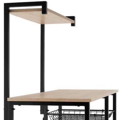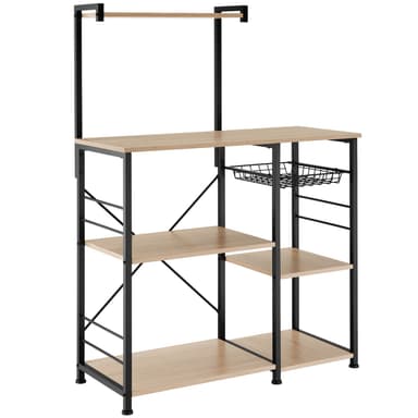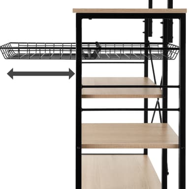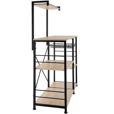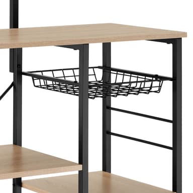Upplev mångsidigheten i den funktionella industriella stilen med den utrymmesbesparande kökshylla Crawley från tectake. Den tydliga, reducerade design, det svala hårda stålet och de varma, inbjudande träelementen ger ett enastående utseende. En generös bordsskiva, två breda och två smala hyllor samt en utdragbar nätkorg och en extra hylla upptill erbjuder enorma utrymmes- och användningsmöjligheter. Trots det luftiga utseendet övertygar den lättskötta konstruktionen med sin goda spänst och höga stabilitet - berika din inredning med ett rustikt förvaringshjälpmedel med den kantiga kökshylla Crawley från tectake.