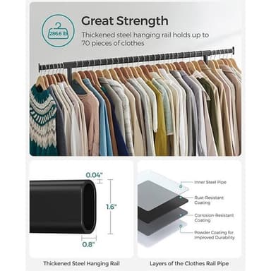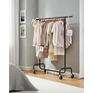 Kraftigt Klädställ på hjul med utdragbar hängskena - SvartLäs mer om produkten