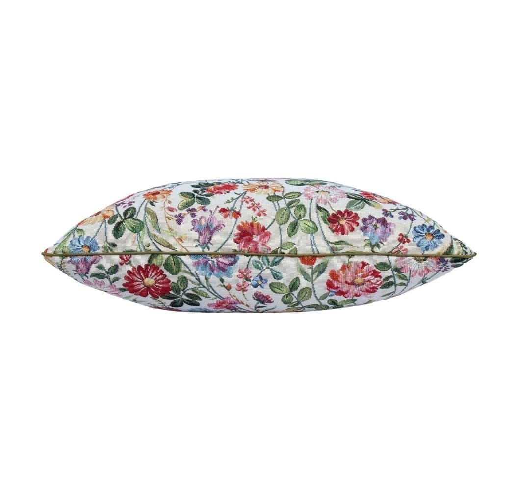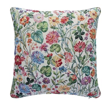 Kudde HOLLY 45x45cm, blommor, kudden har dragkedja, den har rullad kant, gobeläng, 50% polyester, 50% bomull, tyg 489. SKÖTSEL: kudden kan tvättas i 30 grader i tvättmaskinen.