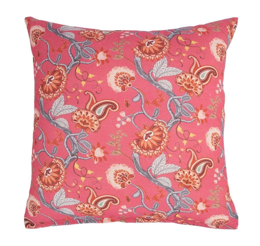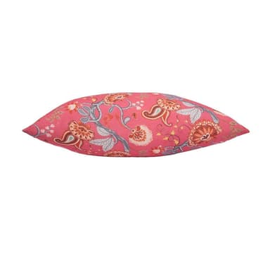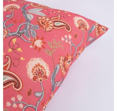 Kudde LONETA 45x45cm, blommor på rosa botten. Material: 50% bomull, 50% polyester, tyg 357. SKÖTSEL: kudde kan tvättas i tvättmaskin vid 30 graders temperatur.