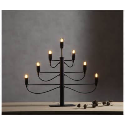 Lika tidlös som tidsenlig, denna sjuarmade elljusstake rubricerar onekligen rummet den befinner sig i.